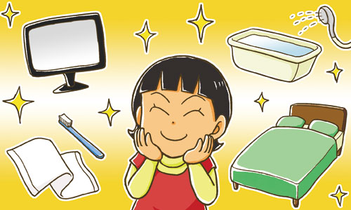 A standard amenity set including towel and toothbrush, etc.