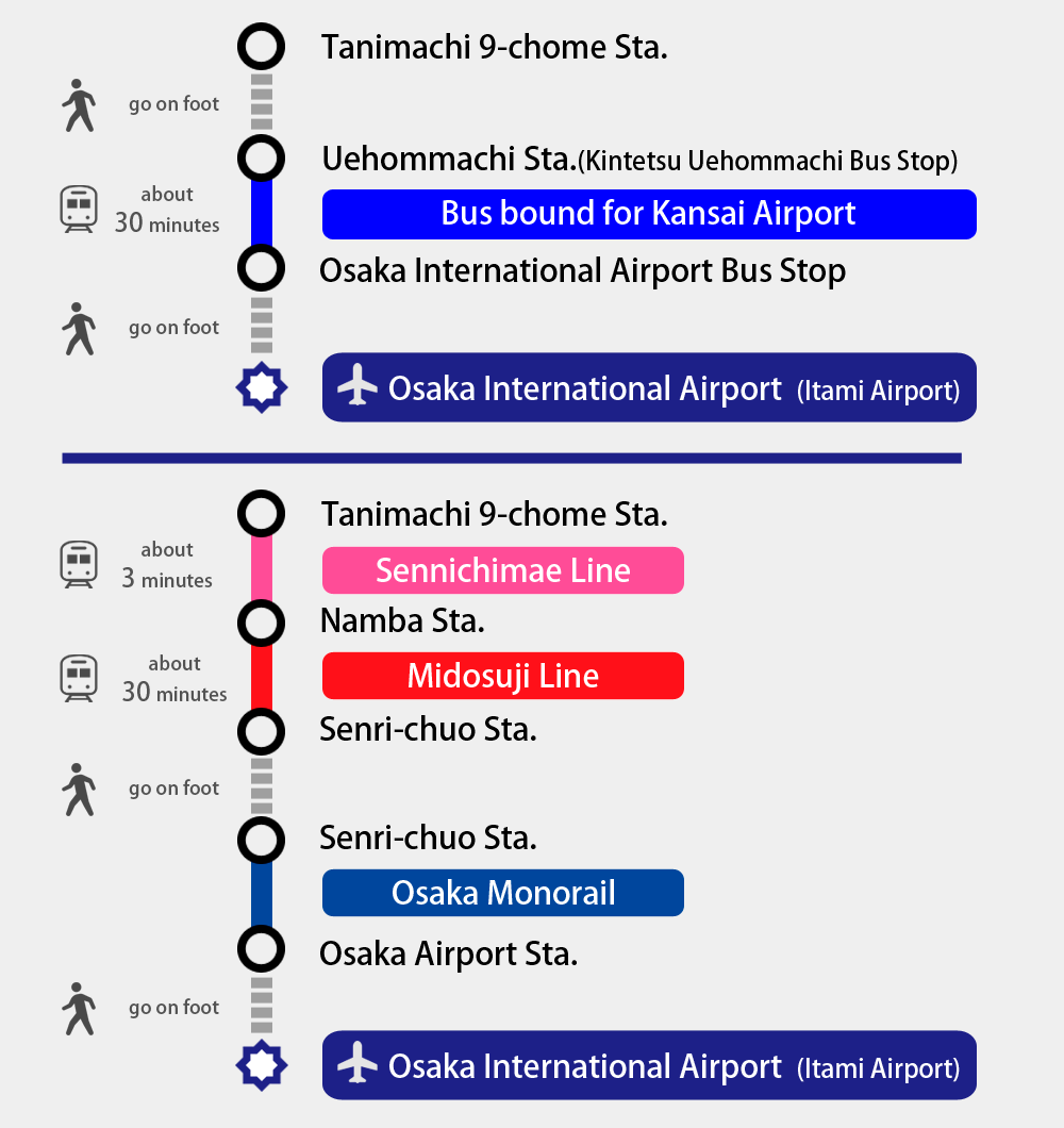 QUICK and EASY ACCESS from/to the International Airports(Kansai Airport, Osaka Airport (Itami Airport),and Kobe Airport.