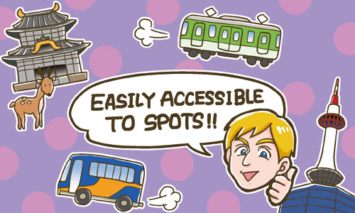 The Best Location for main sightseeing spots in Osaka, Kyoto, Kobe and Nara.
